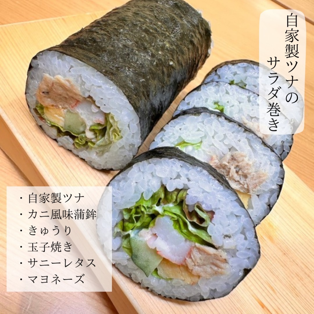 お子さまから大人まで食べやすい、サラダ巻きもご用意しています。